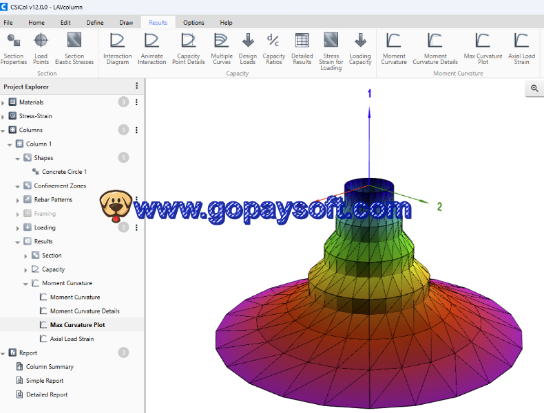 它帮助工程师分析钢筋混凝土柱;根据建筑规范设计柱;检查轴向载荷+弯曲(P-M相互作用);设计矩形、圆形或不规则柱;考虑纤细效应;生成交互图和报告。