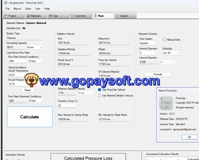 PneuCalc 是一款用于设计和分析气动输送系统的工程软件程序。PneuCalc 用于设计、优化和排查利用空气或气体运输散装物料的管道系统。这些系统在采矿、水泥、化工、食品加工、电厂等行业中很常见。该程序支持设计气动输送管道,计算气流和压力需求,预测管道内物料流动行为,检测堵塞或磨损风险,优化管道直径、布局和系统容量,分析密相和稀释相输送模式。