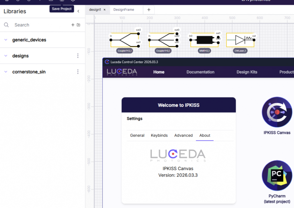 - 示意图绘制与可视化。平台的新功能包括IPKISS Canvas——一个示意式环境,用于布局前可视化和验证电路连接。